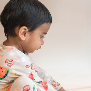 Our Ramadan PJs are joyous, and playful, and exude childlike wonder. Open your senses to a celebration unlike any other! Ramadan is a renewal of faith, fueled by fasting from sunrise to sundown. Cherished moments with loved ones as we break our fast together with a sweet date and milk. Taste of Ramadan celebrates our traditions with this festive design.