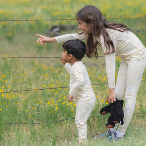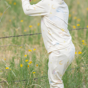 • Dream of Eid in our cozy new print - just in time for Eid Al Adha!! These sweet sheep are dreaming softly amongst clouds and moons and stars to celebrate Eid. Make memories and celebrate Eid with your kids in Jasmine + Marigold’s stretchy and soft bamboo Eid pajamas.