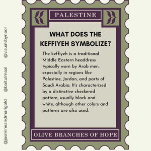 Olive branches of hope. Our latest collaboration with Visuals by Noor features an olive colored keffiyeh print on a cream bamboo viscose pajama pant, and a pajama shirt featuring a historical Palestine map, adorned by olive branches and ascending doves.