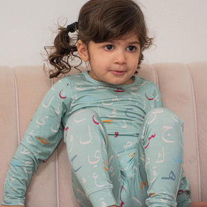• If your child is learning the Arabic language, Jasmine + Marigold’s bamboo Arabic alphabet pajamas are perfect. Inspired to teach kids to normalize the Arabic language and embrace heritage.