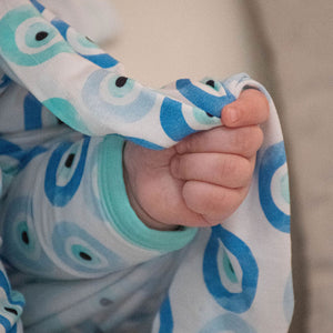 • Wrapping children in your protection and the protection of the evil eye couldn't be easier. The evil eye print is inspired by ancient Eastern culture, "third eye" or protection. This symbol is celebrated in Greek cultures, Turkish heritage, Mexican cultures (called the Mal De Ojo there), Persian cultures, and Arab cultures. While many believe the symbol or amulet holds the power to protect and ward off bad energies, others wear it to celebrate their culture and heritage.