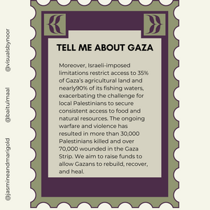 Through your support, 100% of the profits will benefit Baitulmaal, a 501(c)3 organization tirelessly working to deliver crucial humanitarian relief to the people of Gaza and Palestine. Profits are calculated after our costs of manufacturing, transaction fees, logistics, and warehouse employee wages.  Kindly refrain from using discount codes to help us maximize donations.