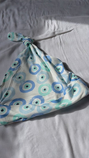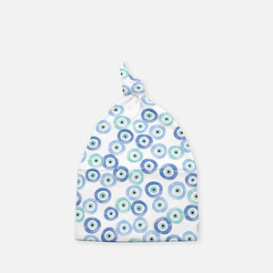 • Beautiful and unisex evil eye print knotted cap. Ward off the evil eye or "nazar" with this beautiful patterned hat. Pattern is print all around the hat.