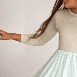• This Calming Crescents dress print is a serene celebration of Ramadan's arrival, crafted for families who appreciate simplicity with meaning. Soft crescent moons and stars are scattered over a soothing mint-green background, evoking the quiet beauty of Ramadan nights. The subtle outline of the full moon is a gentle reminder of how quickly this special month passes – a call to cherish its blessings. This dress is a soft, stylish nod to the peace, reflection, and blessings that fill our hearts during Ramadan.